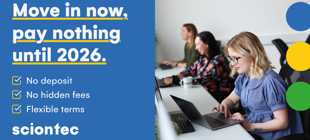Is your office lease up soon? Make the move to CENTRAL TECH or Liverpool Science Park today and pay nothing until next year. No deposit, no hidden fees, flexible terms and 24/7 access. Browse the list of available workspaces below or get in touch to have a look around.